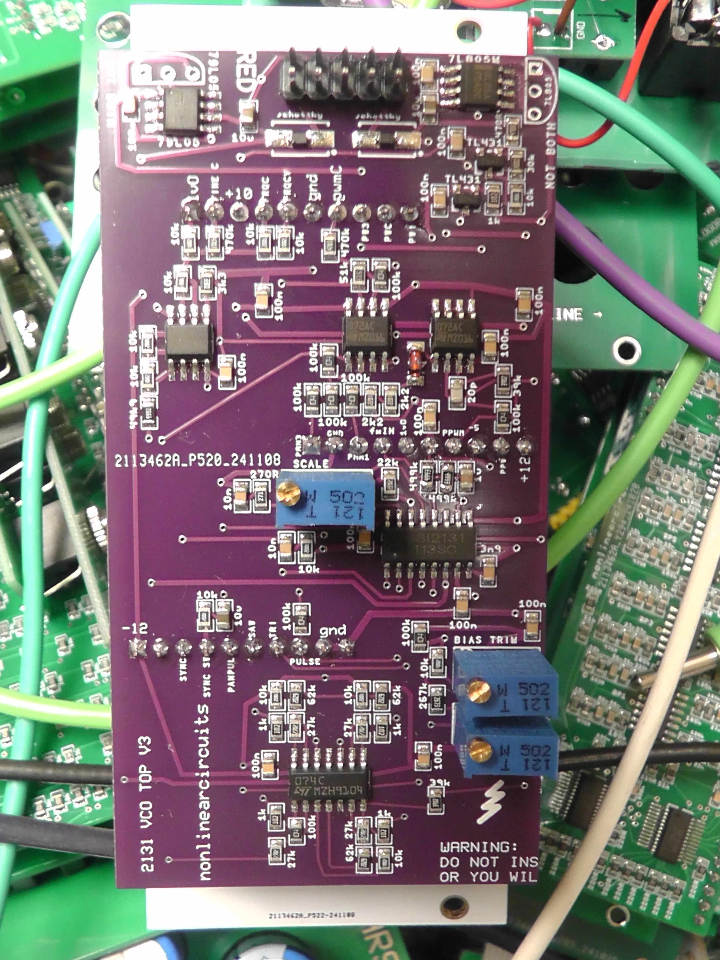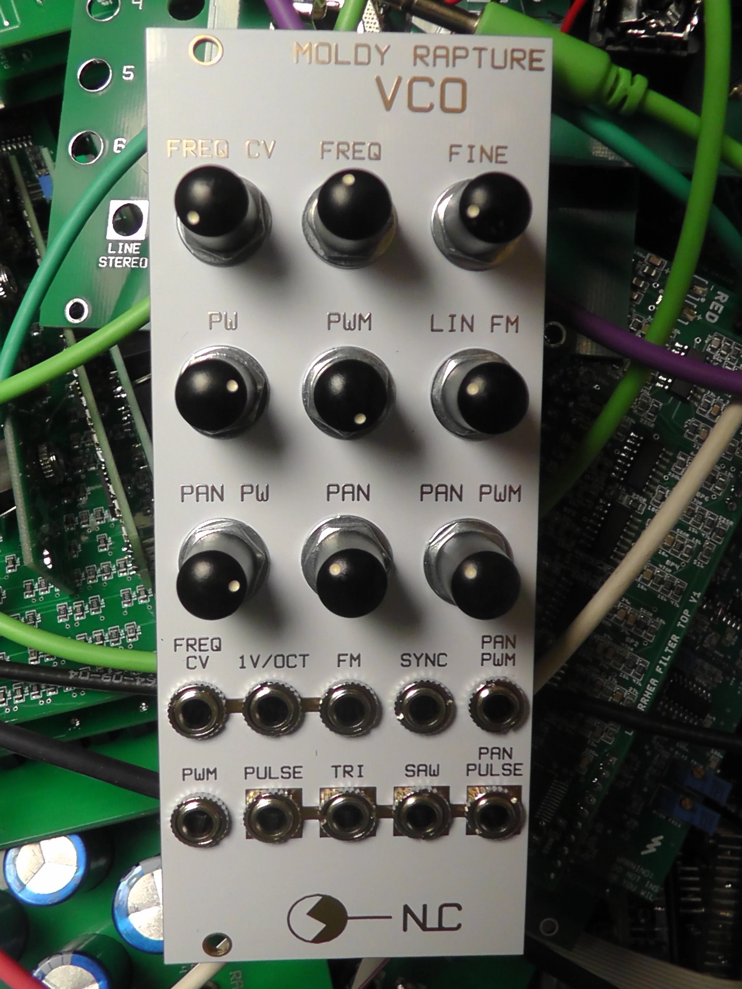 This is a solid VCO using the SSI2131 chip. It is very stable and will track nicely over 10 octaves. It has the stock outputs; saw, triangle and pulse, along with a pan-pulse waveform.